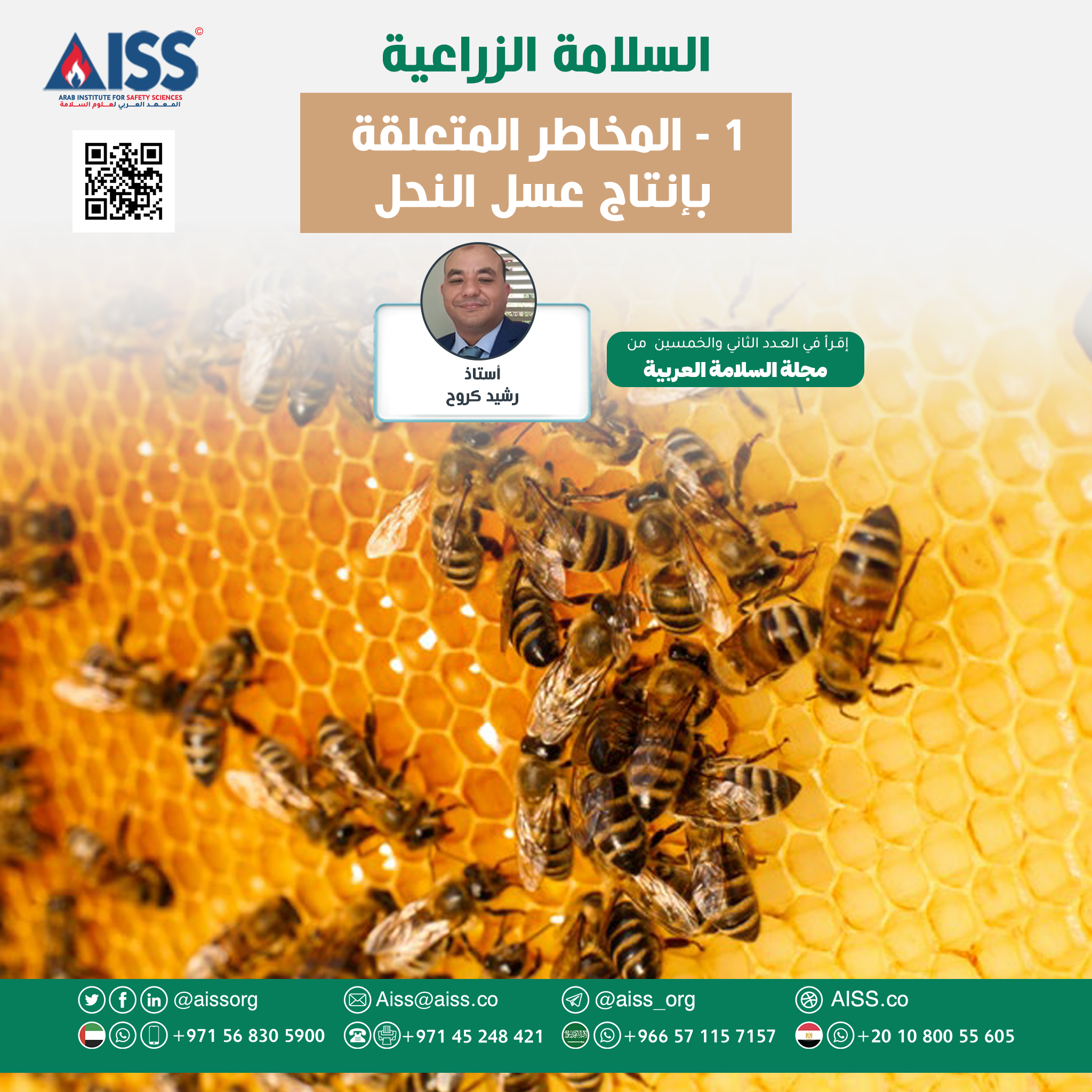 يُعدُّ إنتاج عسل النحل نشاطًا زراعيًّا مُهمًّا يتطلَّب إدارة دقيقة، حيث يرتبط بعددٍ من المخاطر التي تُؤثِّر على السلامة البيئيَّة، والصحيَّة، والاقتصاديَّة، وعلى سلامة جودة وكميَّة الإنتاج. ومن التعامل المباشر مع النحل، وما يصاحبه من مخاطر اللَّدغات إلى استخدام الأدوات والمُعدَّات المتخصصة، توجد مجموعةٌ من التحديات التي تتطلَّب اهتمامًا خاصًّا بسلامة النحَّالين، وحماية البيئة المحيطة، بالإضافة إلى ذلك فإنَّ الأمراض التي تصيب النحل، والتعرُّض للمواد الكيميائية، وسوء ظروف التخزين، كلُّها عوامل قد تؤدِّي إلى تلوث العسل، وانخفاض جودته؛ ممَّا يهدِّد السلامة الغذائية للمستهلكين، وهو ما يجعل من الضروري اتِّباع أساليب سلامة متقدمة لإدارة النحل، وحمايته من هذه التهديدات.