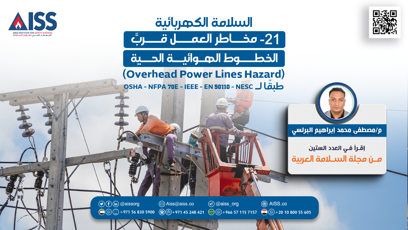 العمل قرب الخطوط الهوائيَّة الحيَّة ليس مجرَّد مخاطرة هندسية، بل اختبار للالتزام المهني بالمعايير العالمية؛ مثل: OSHA، NFPA 70E، IEEE Std 516، EN 50110، وNESC، التي حوَّلت الوفيات من كارثة يوميَّة إلى حَدَثٍ نادرٍ بنسبة انخفاض تصل إلى 90-95% عند التطبيق الصارم.