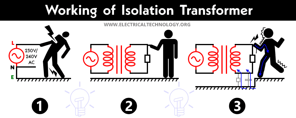 بما أنَّ التيار الكهربائي لا يمرُّ إلا خلال دائرة كهربائية مغلقة، فإنَّه لن يمرَّ في جسم الإنسان من خلال محولات العزل بسبب أنَّ ملفات المحول الثانوية غير موصولة بالأرضي، وعليه: إذا ما مسَّ الإنسان الطرف الحي من السلك وجسمه موصول بالأرضي، فإنَّ التيار لن يستطيع غلق دورته الكهربائية وإكمالها في المحول بسبب عدم ربطها من جهة ملفات الثانوي بالأرضي، خلافًا للشبكة الكهربائية المُؤرَّضة من أحد أطرافها التي إذا ما مسَّ الإنسان فيها السلك الحي، فإنَّ الدورة الكهربائية ستكتمل من خلال الأرضي إلى الشبكة الكهربائية.