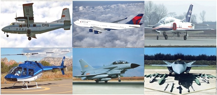 | الطائرات العسكرية | تمتاز بخطورة تواجد الأسلحة وأشعَّة الرادارات، ونوعية الأجنحة (ثابتة أو متحركة)، وخطورة المحركات النفاثة. |