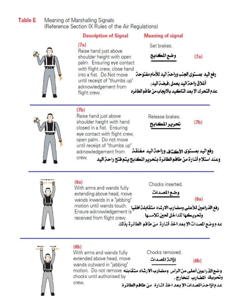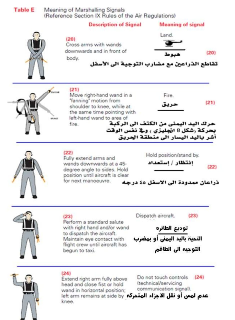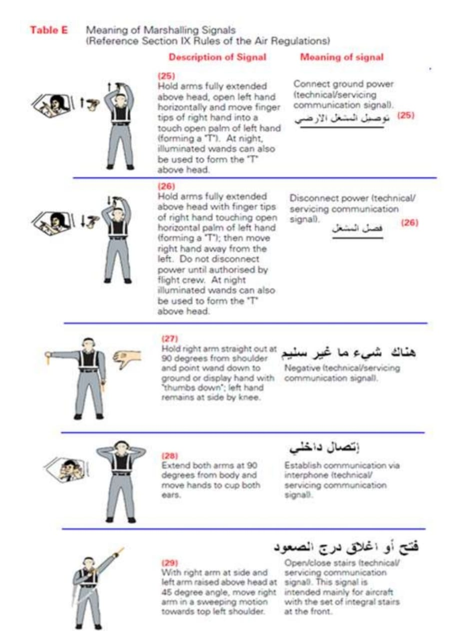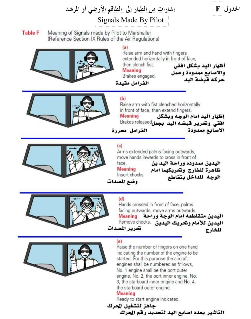 إشارات من الطيار إلى الطاقم الأرضي أو المرشد