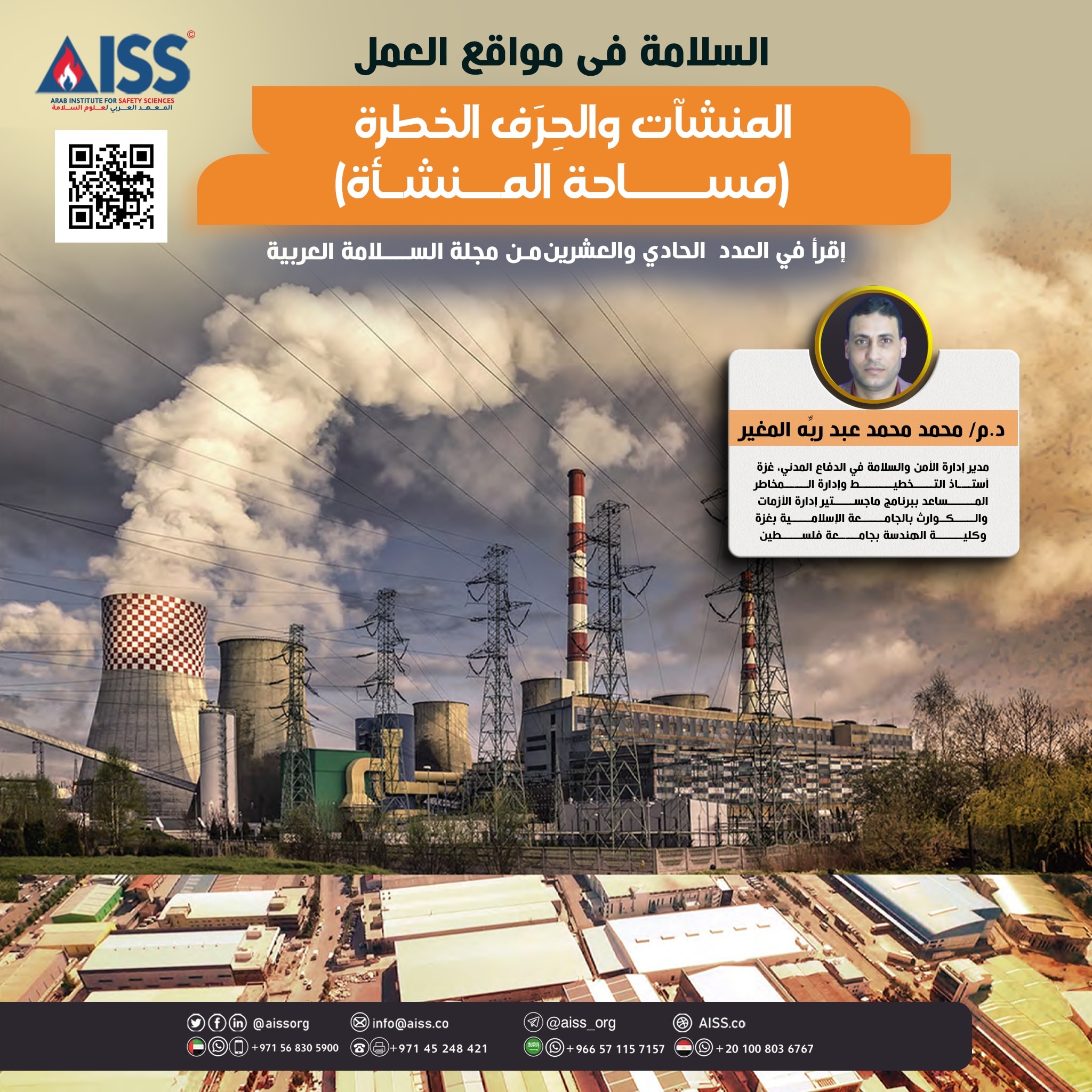 وتُمثِّل المساحة عنصرًا أساسيًّا كمؤشرٍ لقياس خطورة المنشأة وَفْق مجموعة من العوامل التي تُحدد نسبة الخطر فيها، ويتمثَّل في العلاقات بين مسافات الأمان والعمليات التشغيليَّة، والعلاقة بين مُكوِّنات المشروع، والعلاقة بين الخطر وعوامل السلامة؛ لذا من الممكن أن تهتمَّ المنظمات التي تشرع أنظمة البناء والأنظمة الخاصة بالسلامة والوقاية بوَضْع مُحدِّدات، وحد أدنى لمساحة المنشأة وَفْق طبيعة الأشغال، ونوعية الخطر المُتوقَّع ومستواها، فالمنشآت التي يكون بها أكثر من خط إنتاجٍ تختلف مساحتها عن ذات خط الإنشاء الواحد، كما وأن هناك حاجةً لزيادة عدد الأنظمة الخاصة بتنظيم الحِرَفِ والمنشآت الخطرة، وتحديد المساحات لكل فراغٍ وَفْق طبيعة الأشغال والاستخدام للمنشأة.