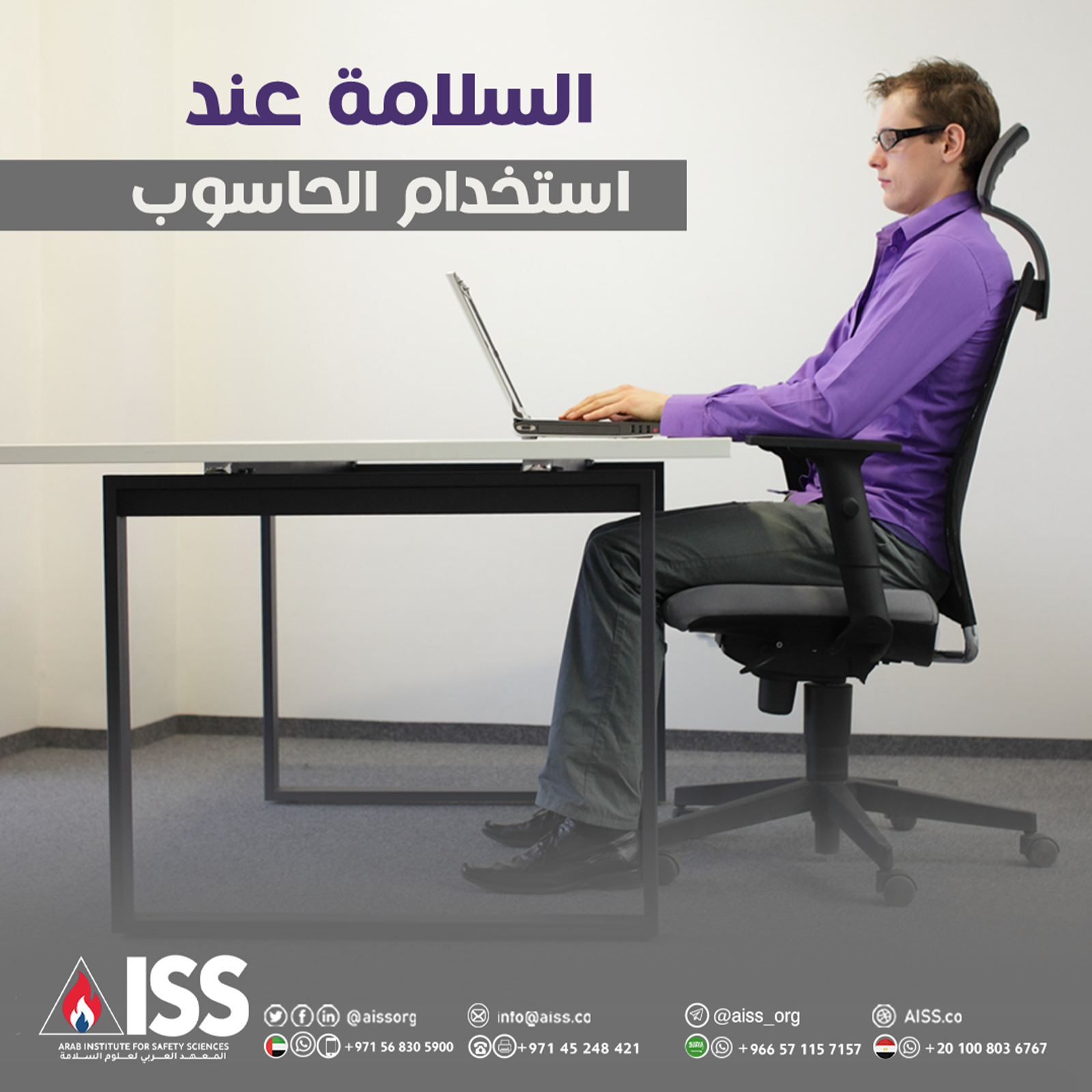 يجب أن يكون وضع شاشة الكمبيوتر في مستوى أنف الشخص الجالس امامه وتوضع لوحة المفاتيح بحيث تكون الأكتاف في وضع معتدل