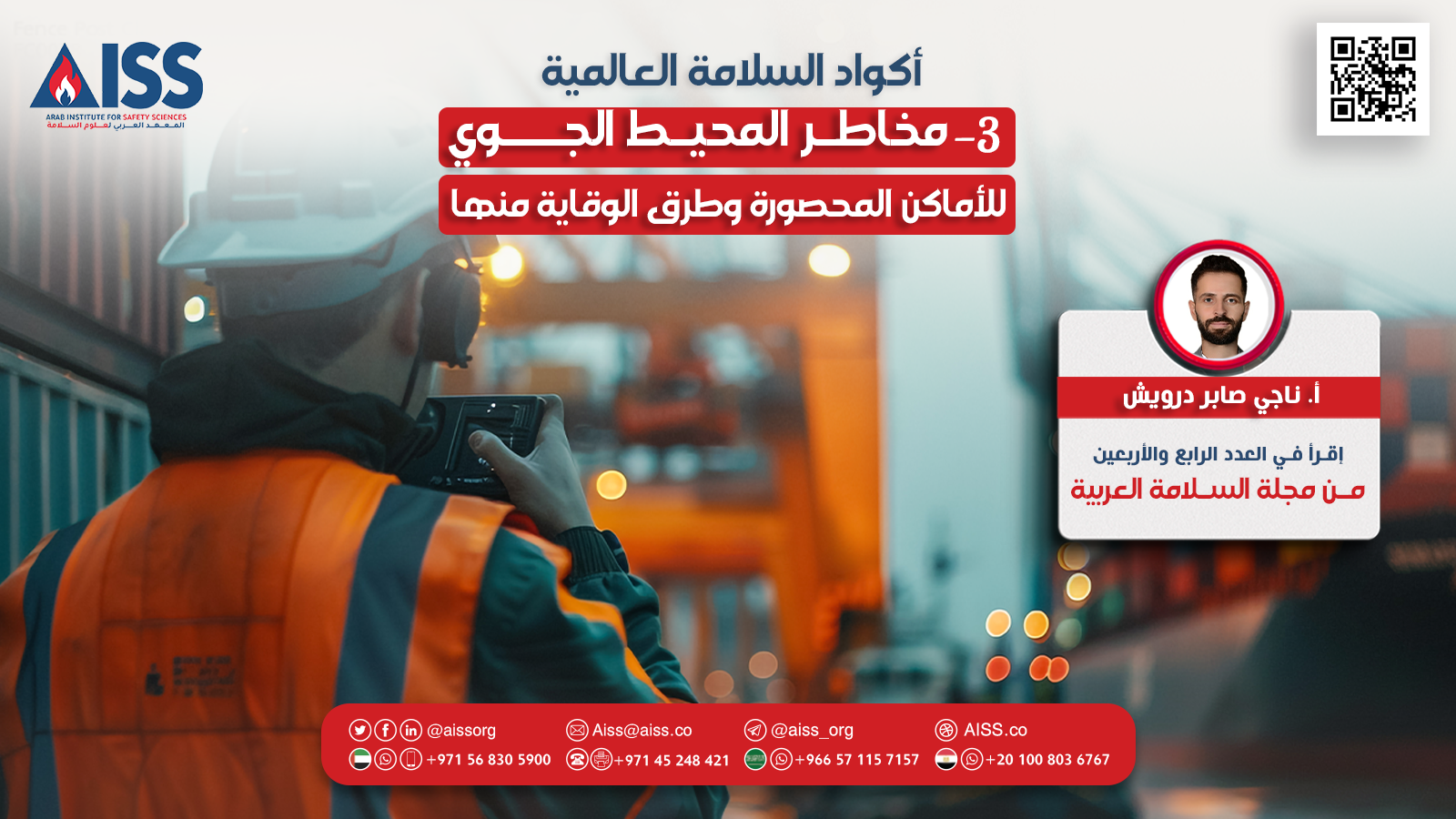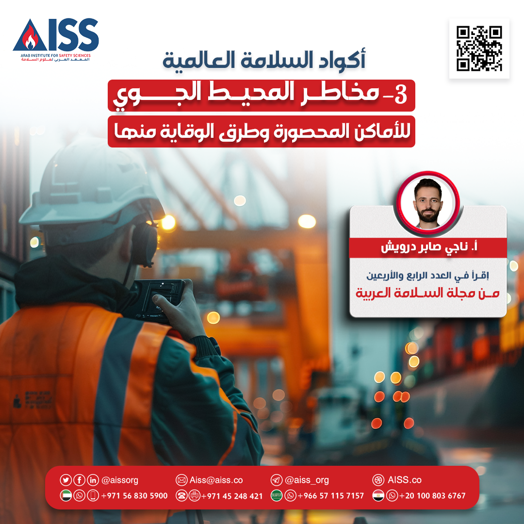 ⦁ يُمثِّل الغلاف الجوي الذي يعاني من نقص الأكسجين أكثر المخاطر الجوية في الأماكن الضيقة، ويعتمد معظم أجهزة استشعار الغاز القابل للاحتراق على الأكسجين، وقد لا توفر قراءات موثوقة في الأجواء التي تعاني من نقص الأكسجين؛ ولذلك يجب أن يتم اختبار تركيزات الأكسجين كمخاطر الحريق، وتسجيل التركيز لضمان وجود كمية كافية من الأكسجين لتشغيل المستشعر بشكل سليم وَفْقًا لتوصيات الشركة المُصنِّعة للمُعدَّات، وتُمثِّل الغازات والأبخرة القابلة للاحتراق تهديدًا مباشرًا للحريق والانفجار، كما أنَّها تُشكِّل خطرًا جويًّا شائعًا موجودًا في الأماكن الضيِّقة.
