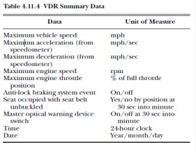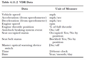 4.11.5 عند امتلاء الذاكرة يتمُّ استبدال البيانات الجديدة أولًا، واستبدالها بالقديمة عند الحاجة، أو حدوث حادثة للسيارة يجب أن يكون المستخدم أو الجهة المسئولة قادرة على استخراج بيانات حركة السيارة وتحليلها.