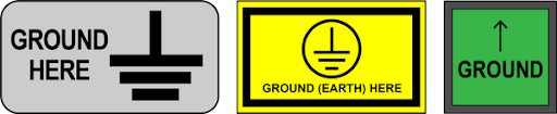 يُشَار إلى نقاط التَّأريض بواسطة لافتة لتسهيل التعرُّف عليها. الشكل (2). قد يختلف نوع اللَّافتة حسَب موقعها، ونوع الطائرة.