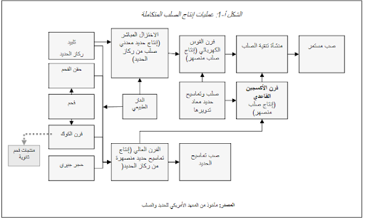Blast and Basic Oxygen furnaces (BF و BOF)، وإعادة تدوير الخردة المعدنية في عملية فرن القوس الكهربائي electric arc furnace (EAF)، وإنتاج المنتجات شبه المُصنَّعة، وأنشطة الدرفلة الساخنة والباردة، ولا تشمل معلومات عن استخراج المواد الخام، والمعالجة الإضافيَّة للمنتجات شِبْه المُصنَّعة إلى منتجات تامَّة الصُّنع.