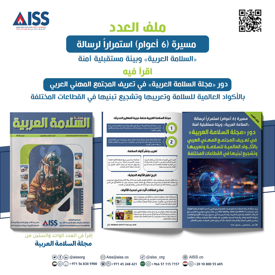 برزت مجلَّة السلامة كمنصَّة رائدة في تعريف المجتمع المهني العربي بأحدث أكواد السلامة العالمية؛ مثل: تحديثات NFPA 72 لعام 2025، وISO 45001، من خلال ترجمتها وتعريبها لتتناسب مع السِّياقات الثقافية والتنظيمية العربية، وهذا الدور يمتدُّ إلى تشجيع تبنِّي هذه الأكواد في قطاعات متنوِّعة؛ كالنفط والغاز، والرعاية الصحية، والتعليم، عَبْر مقالات فنيَّة تطبيقية، وملفَّات متخصِّصة تربط بين المعايير الدولية والتشريعات المحلية؛ ممَّا أسهم في خفض الحوادث، وتعزيز الامتثال.