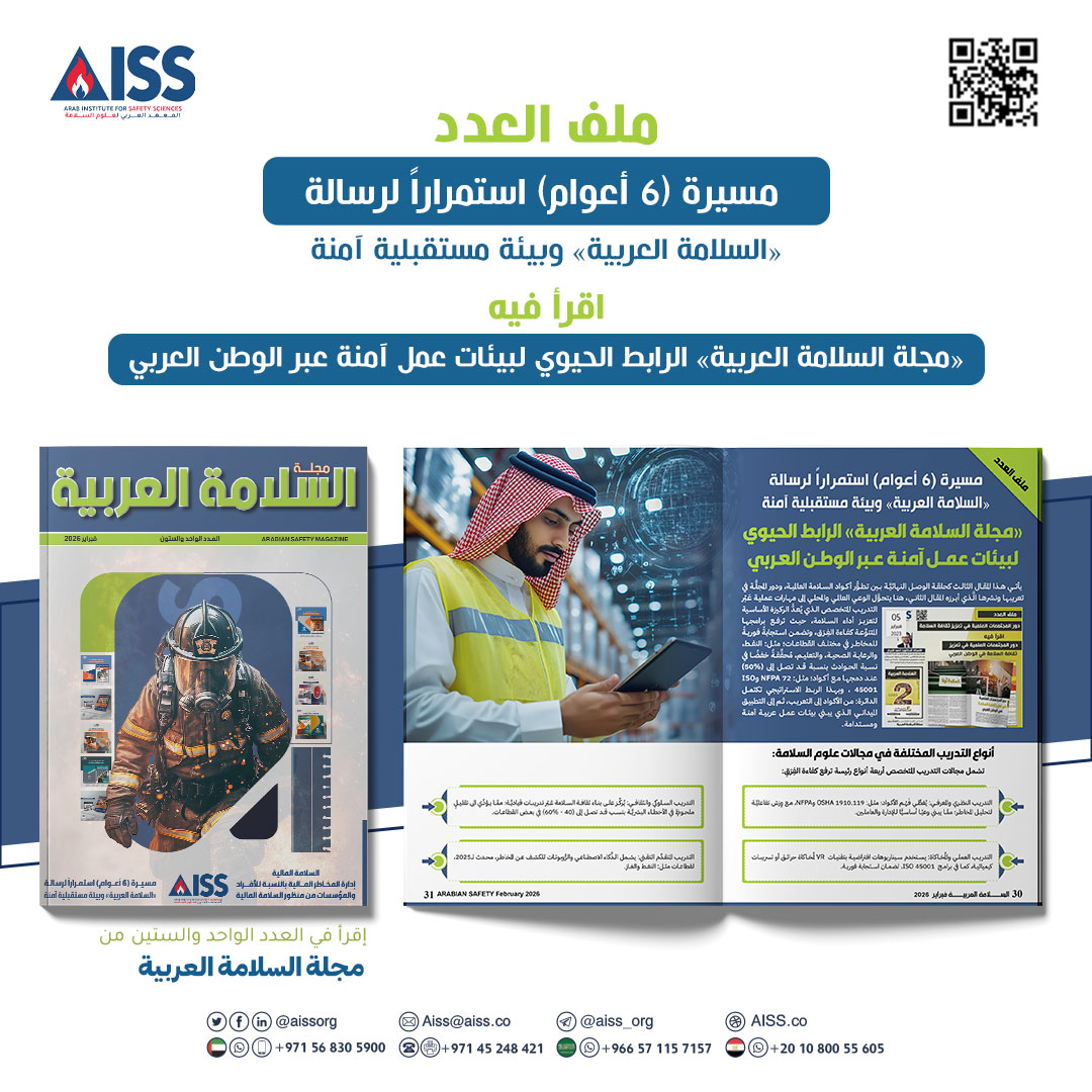 تُجسِّد هذه الثلاث مقالات المترابطة تطوُّر الأكواد العالمية، ودور المجلَّة في تعريبها، وأهميَّة التدريب المتخصص، ورؤية «مجلة السلامة العربية» كركيزةٍ استراتيجيةٍ لثورة السلامة المهنية في الوطن العربي، وخلال ستِّ سنوات استمرارية بَنَتْ شبكة خبراء تُغطِّي قطاعات النفط، والرعاية، والتعليم. وبدءًا من نَشْر التحديثات؛ مثل: NFPA 72-2025، مرورًا بتكييفها مع السِّياسات المحليَّة (20 تحديثًا وطنيًّا)، وصولًا إلى تدريب آلاف الكوادر، أصبحت المجلَّة دليلًا فنيًّا يُقلِّل التكاليف الاقتصادية، ويحمي الأجيال، مؤكدةً أنَّ السلامة ليست واجبًا، بل استثمارًا في مستقبل آمن ومزدهر يفخر به المجتمع العربي بأكمله.