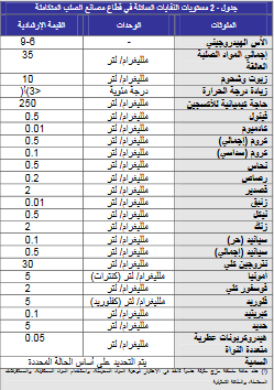 ويَعْرض الجدولان (1) و(2) المبادئ التوجيهية المتعلقة بالانبعاثات والنُّفايات السائلة لهذا القطاع، وتشير القِيَم الإرشادية لانبعاثات العمليات والنُّفايات السائلة في هذا القطاع إلى الممارسات الصناعيَّة الدولية الجيِّدة، كما تنعكس في المعايير ذات الصِّلة للبلدان ذات الأُطُر التنظيميَّة المعترف بها، ويمكن تحقيق هذه المبادئ التوجيهيَّة في ظلِّ ظروف التشغيل العادية في المرافق المُصمَّمة والمُدَارة بشكلٍ مناسبٍ من خلال تطبيق تقنيات مَنْع التلوث ومكافحته الَّتي نُوقِشَتْ في الأقسام السابقة.
