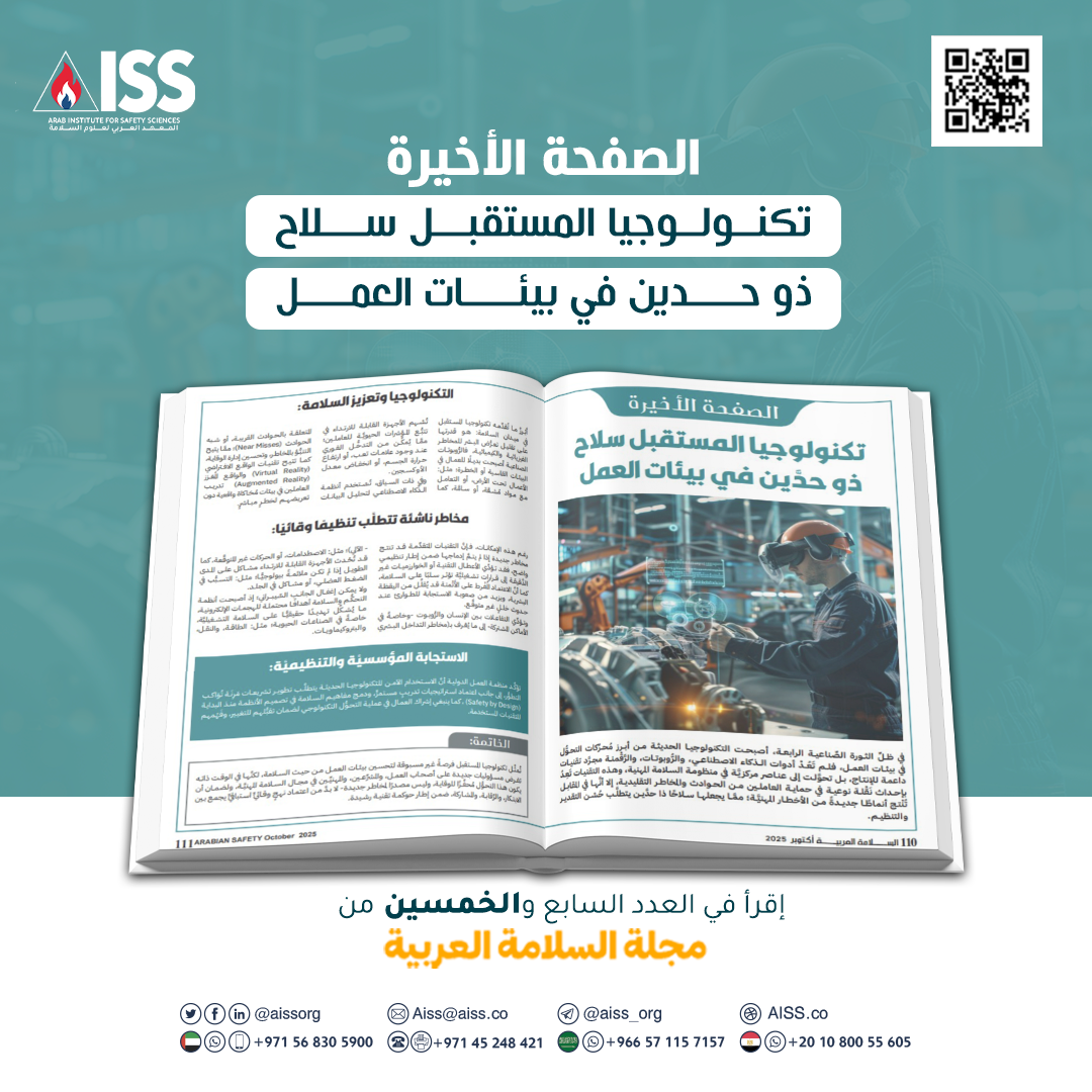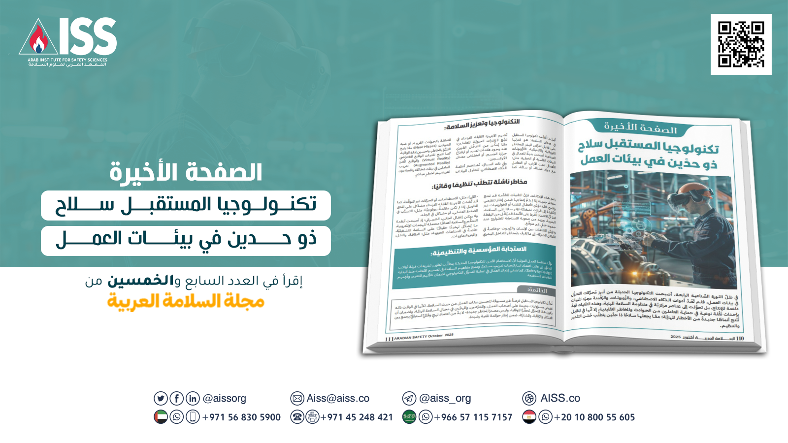 تُمثِّل تكنولوجيا المستقبل فرصةً غير مسبوقة لتحسين بيئات العمل من حيث السلامة، لكنَّها في الوقت ذاته تفرض مسؤوليات جديدة على أصحاب العمل، والمشرِّعين، والمهنيِّين في مجال السلامة المهنيَّة، ولضمان أن يكون هذا التحوُّل مُحفِّـزًا للوقاية، وليس مصدرًا لمخاطر جديدة- لا بدَّ من اعتماد نهجٍ وقائيٍّ استباقيٍّ يجمع بين الابتكار، والرِّقابة، والمشاركة، ضمن إطار حوكمة تقنية رشيدة.