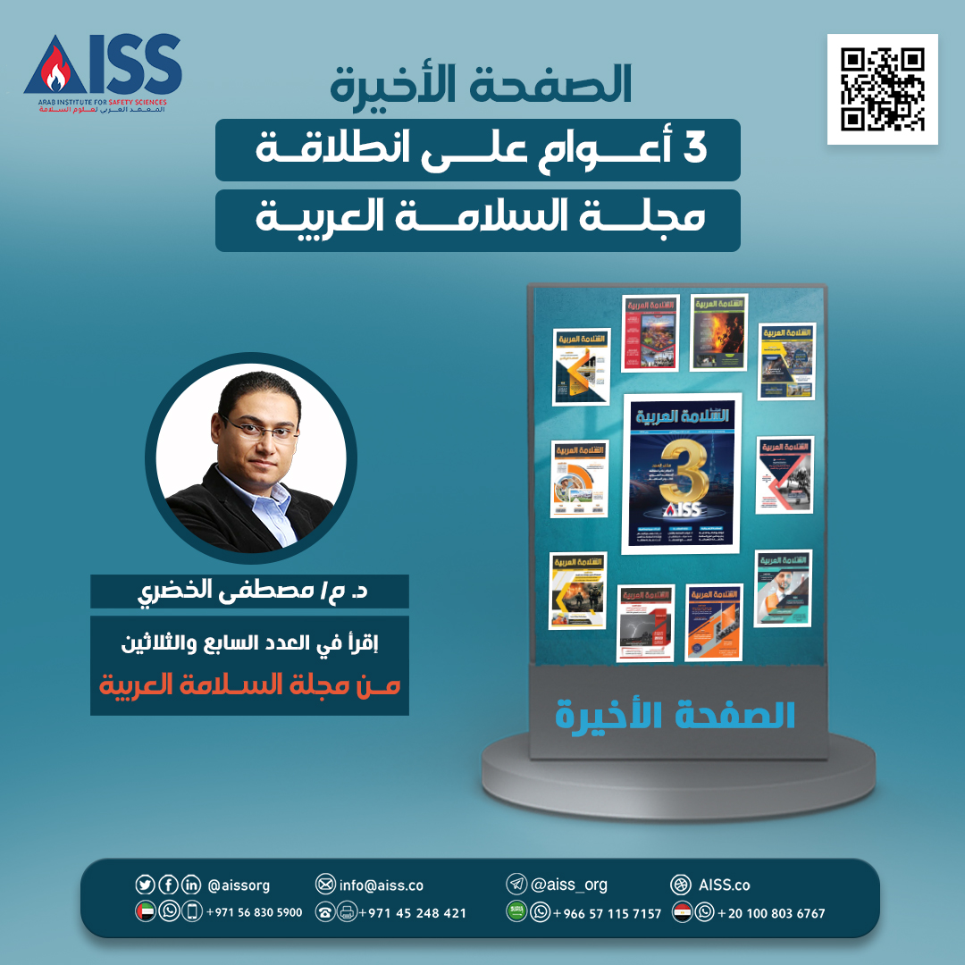 نحتفل في العدد السادس والثَّلاثين بمناسبة مرور ثلاث سنوات على إصدار (مجلة السلامة العربية)، والَّتي تصدر عن (المعهد العربي لعلوم السَّلامة)؛ حيث نحتفل بثلاث سنوات من النجاح والتقدُّم في مجال نَشْر المعلومات العلميَّة المتعلِّقة بالسلامة.
