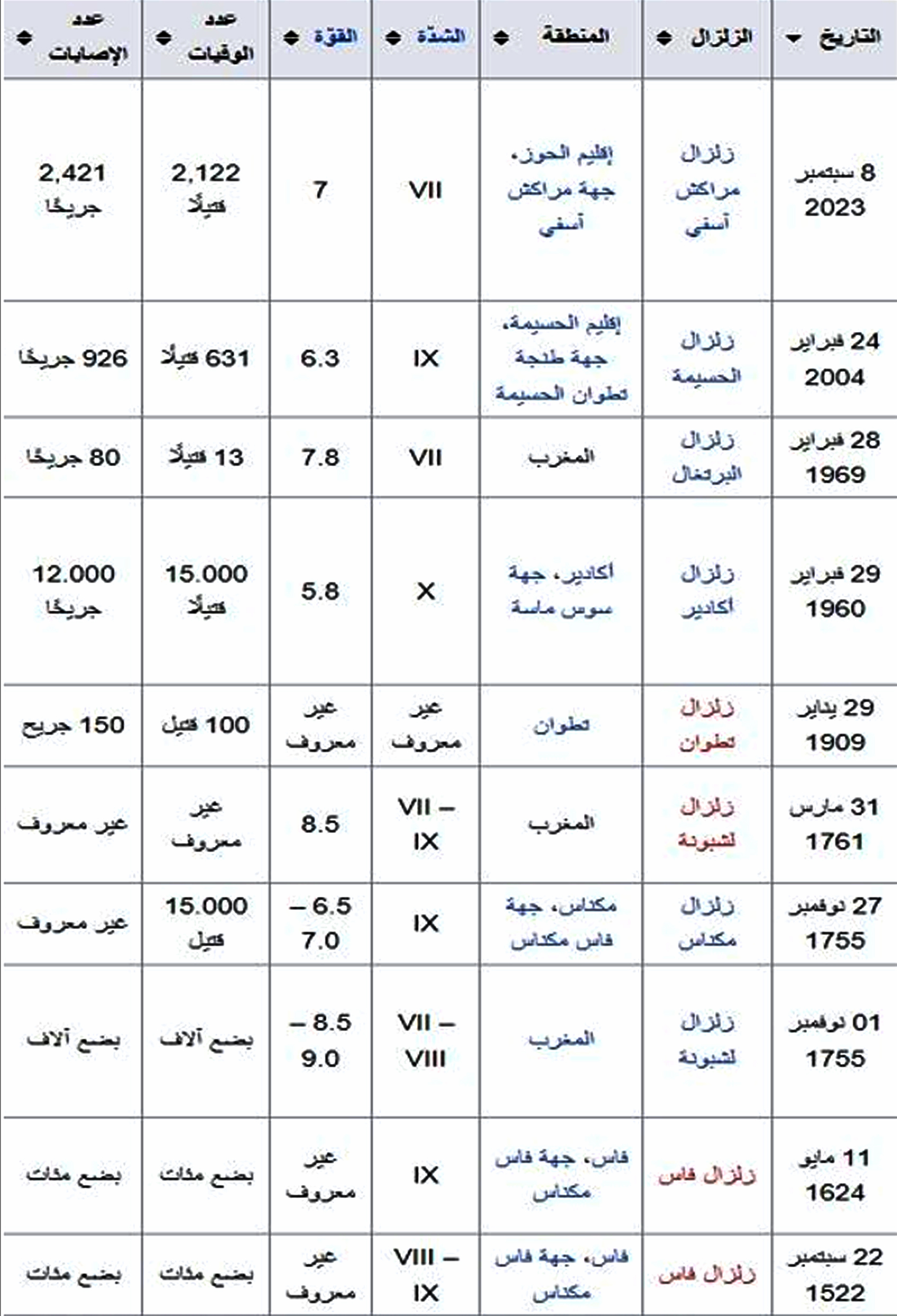 وتسردُ هذه المقالة قائمةً بالزلازل الكبيرة التي ضربت المغرب، وخاصَّة تلك التي كانت بُؤْرتها في المغرب، وكان لها تأثيرٌ كبيرٌ على البلاد.