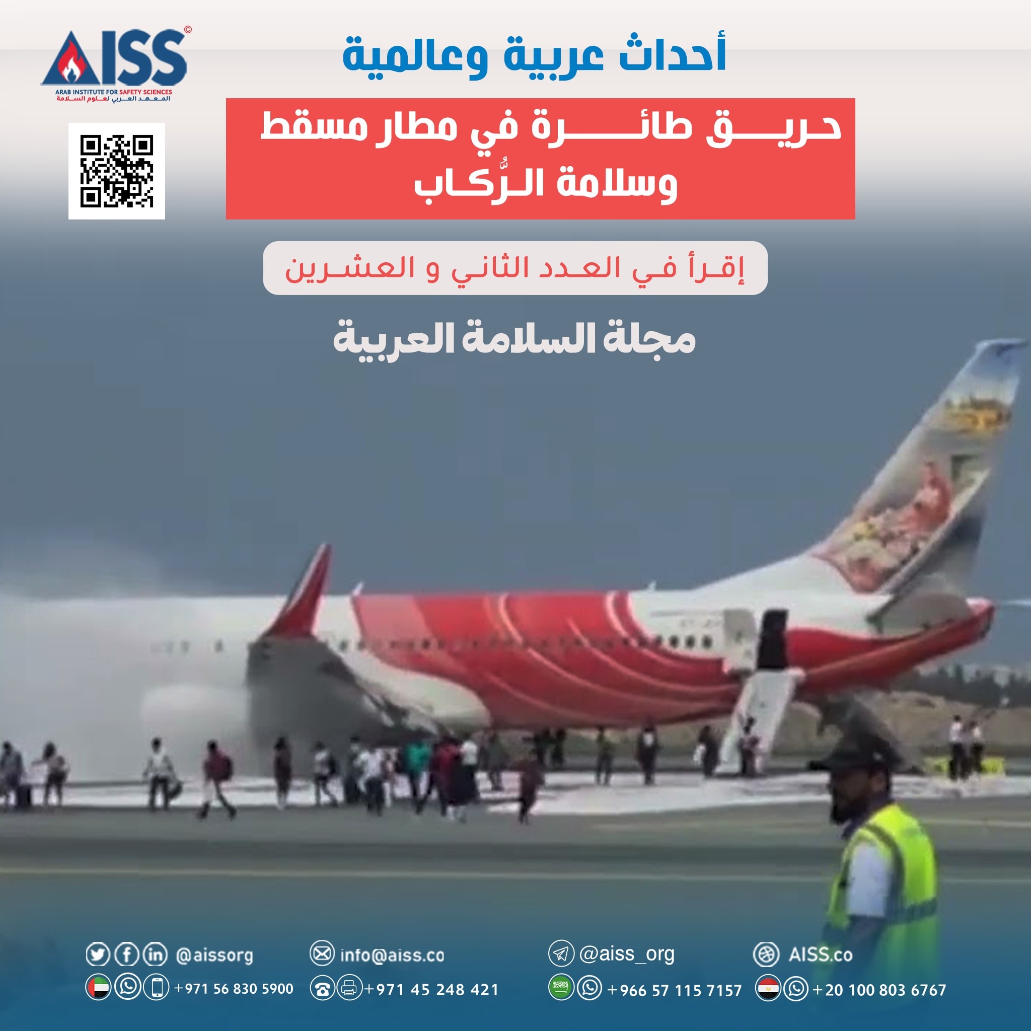 في صباح الأربعاء الموافق الرابع عشر من سبتمبر لعام 2022م، اندلع حريقٌ في مُحرِّك طائرة ركاب تابعة لشركة (إير إنديا إكسبريس)، قبل إقلاعها من مطار مسقط الدولي، ما أدَّى إلى إجلاء رُكَّابها، ووَفْق فيديو متداول فقد هرع الرُّكاب بعيدًا عن الطائرة التي تصاعد منها الدخان، فيما أصدرت هيئة الطيران المدني العمانية بيانًا، قالت فيه: إنها باشرت مع الجهات المَعْنيَّة في مطار مسقط الدولي متابعة بلاغٍ عن وجود حالةٍ طارئةٍ في إحدى الطائرات، وتمَّ التعامل مع الحالة من قِبَلِ الجهات المختصَّة.