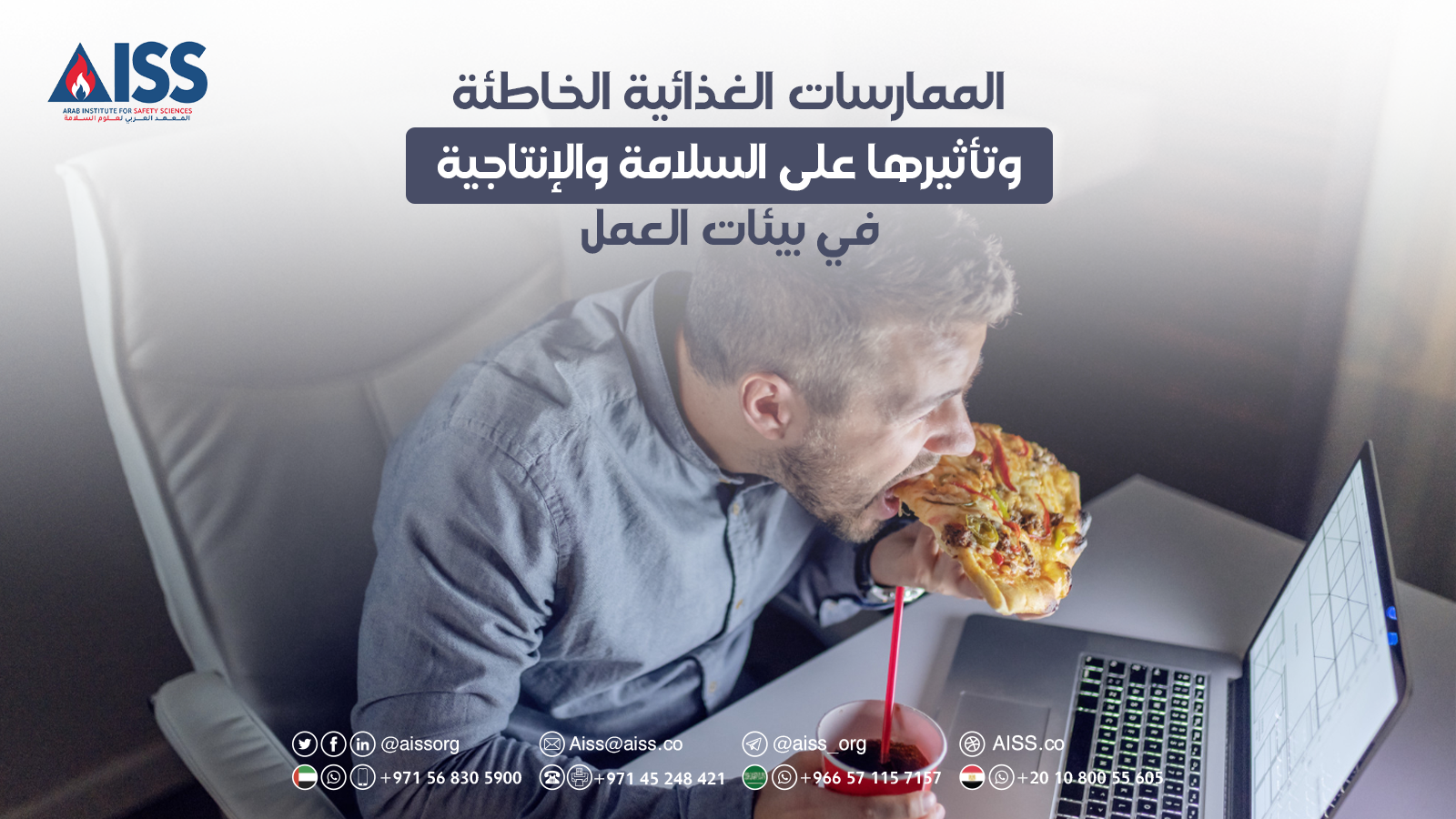 تشكل الممارسات الغذائية الخاطئة، مثل الاعتماد على الوجبات السريعة أو تخطي الوجبات المنتظمة، تهديداً مباشراً لسلامة العاملين، حيث تؤدي إلى انخفاض التركيز وزيادة مخاطر الحوادث (دراسة BYU على 20,000 موظف وجدت أن العاملين بسوء تغذية أكثر عرضة لفقدان الإنتاجية بنسبة 65% وأكثر تعرض للارهاق الوظيفي، مما قد ينعكس بشكل غير مباشر على السلامة مقارنة بالأصحاء).