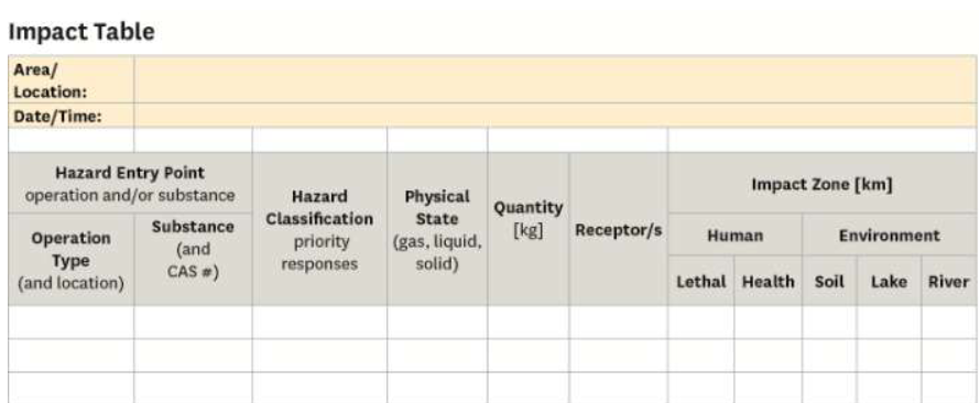 ويجب أن تَدْعم الأداة اتِّخاذ القرارات في الموقع عندما تُؤثِّر الانبعاثات الكيميائية الكبيرة على سلامة صحة الإنسان مباشرةً، أو عَبْر سلامة البيئة، ويجب أن تكون مناسبةً لتحديد أولويَّات خيارات إدارة الحدِّ من التأثير في ظلِّ ظروف صعبة في جميع أنحاء العالم.