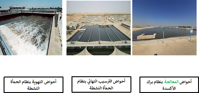وتقنيات محطات المعالجة هي: (طبيعية – كيميائية- بيولوجية).