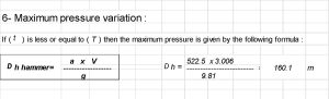 ونستنتج منها أقصى ضغطٍ تتحمله الماسورة، ونطلق عليه delta h hammer ضغط الطرق المائي.