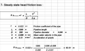 - حساب أقصى ضغط يحدث عنده طرق مائي Design Criteria، معادلات المهندس الروسي نيكولاي جوكوفيسكي.