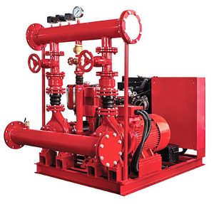 - مضخات دفع تدفع المياه في المواسير في نظام الإطفاء.