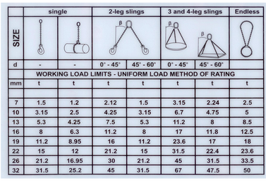 - قياس قُطْر السلسلة في المكان الذي تظهر به أكثر علامات التلف،ومقارنة ذلك بالجدول الآتي، وإبعاد أية سلسلة يبلغ قُطْرها أقل من المذكور بالجدول.