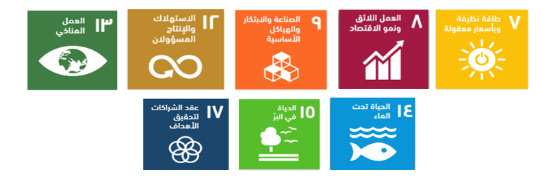 - ونجد عند تحقيق البند رقم (8) الخاص بالعمليات، خاصة الجزئية الخاصة بالتصميم، والتي تهدف إلى إعادة تصميم وابتكار ماكينات وأدوات جديدة تسهم في تقليل استهلاك الطاقة، وتوفير طاقة نظيفة، فبهذا يتحقق الهدفان رقم (7)، وهو طاقة نظيفة وبأسعار معقولة، والهدف رقم (9)، الصناعة والابتكار والهياكل الأساسية.