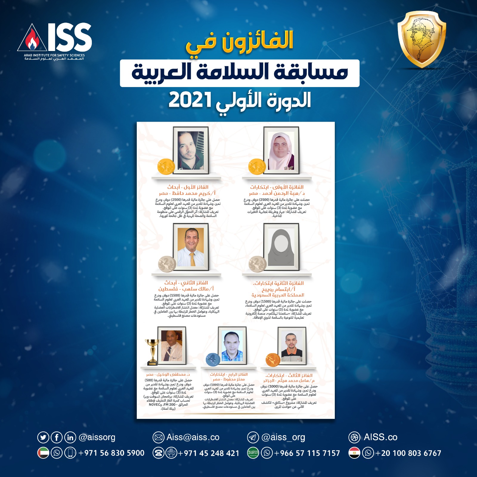 - نشر أسماء الفائزين في (مجلة السلامة العربية) ، وعلى جميع منصَّات المعهد العربي لعلوم السلامة.