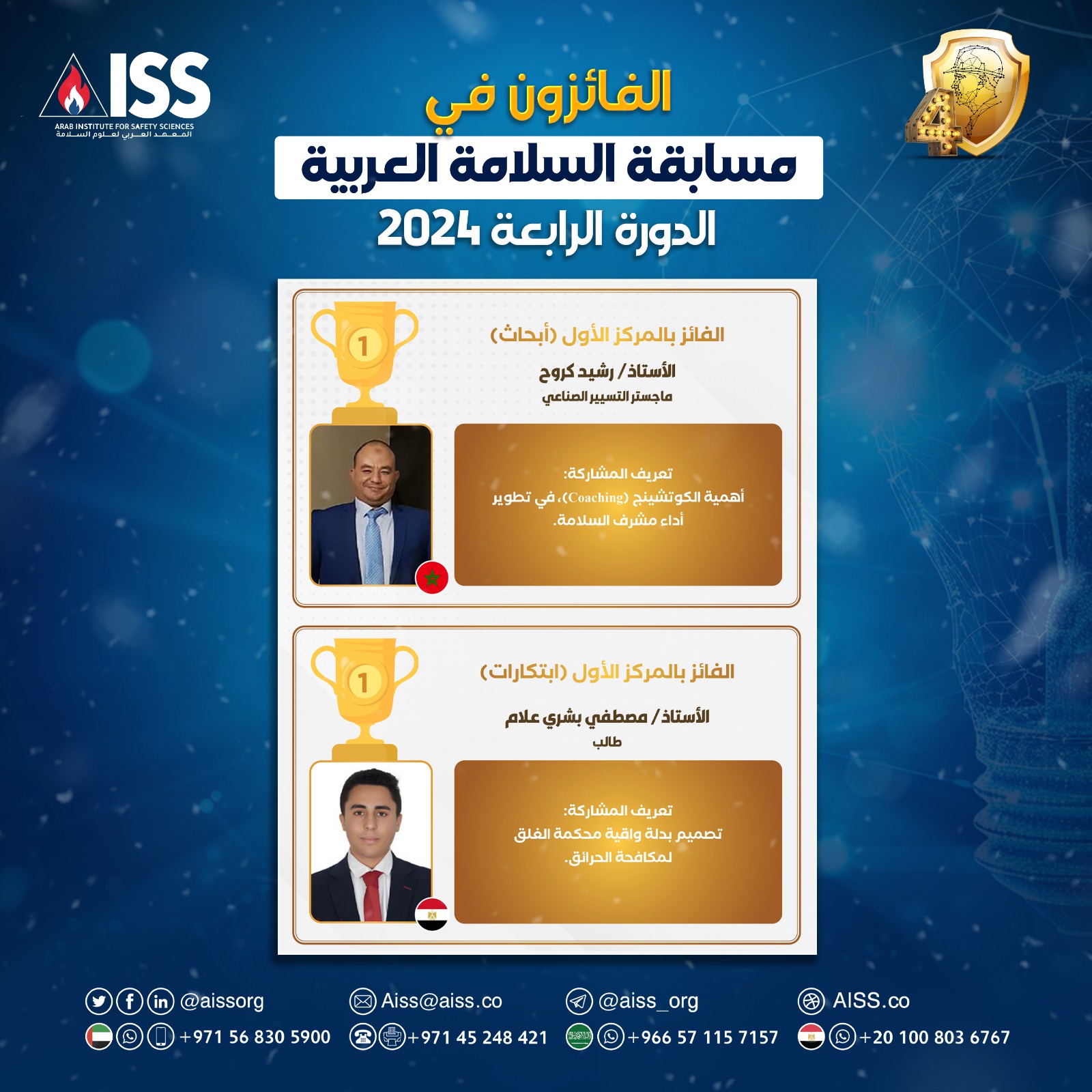- فرصة للفوز بعضوية مجانية لمدة عام على منصة المعهد العربي لعلوم السلامة AISS.CO والاستفادة بالمزايا والخدمات المقدمة من المعهد.