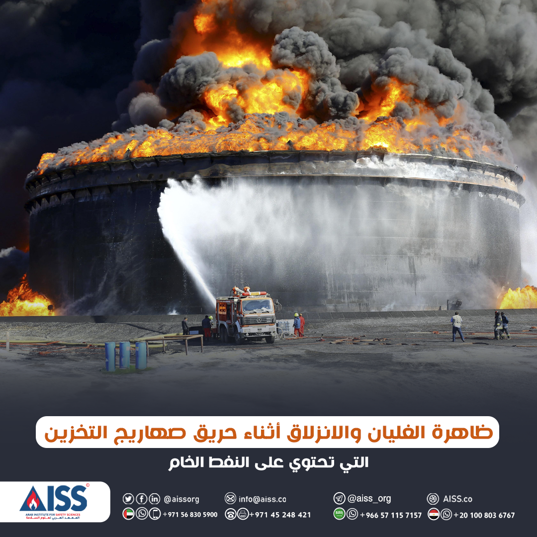 تلعب الخواص الكيميائية والفيزيائية للنفط الخام الدور الرئيسي في خطر الحريق. الأهم هو تشكيل موجة الحر والغليان المحتمل والانزلاق. هذه هي الظواهر المميزة لحرائق خزانات النفط الخام والتهديدات الحقيقية لرجال الإطفاء والمرافق والناس.