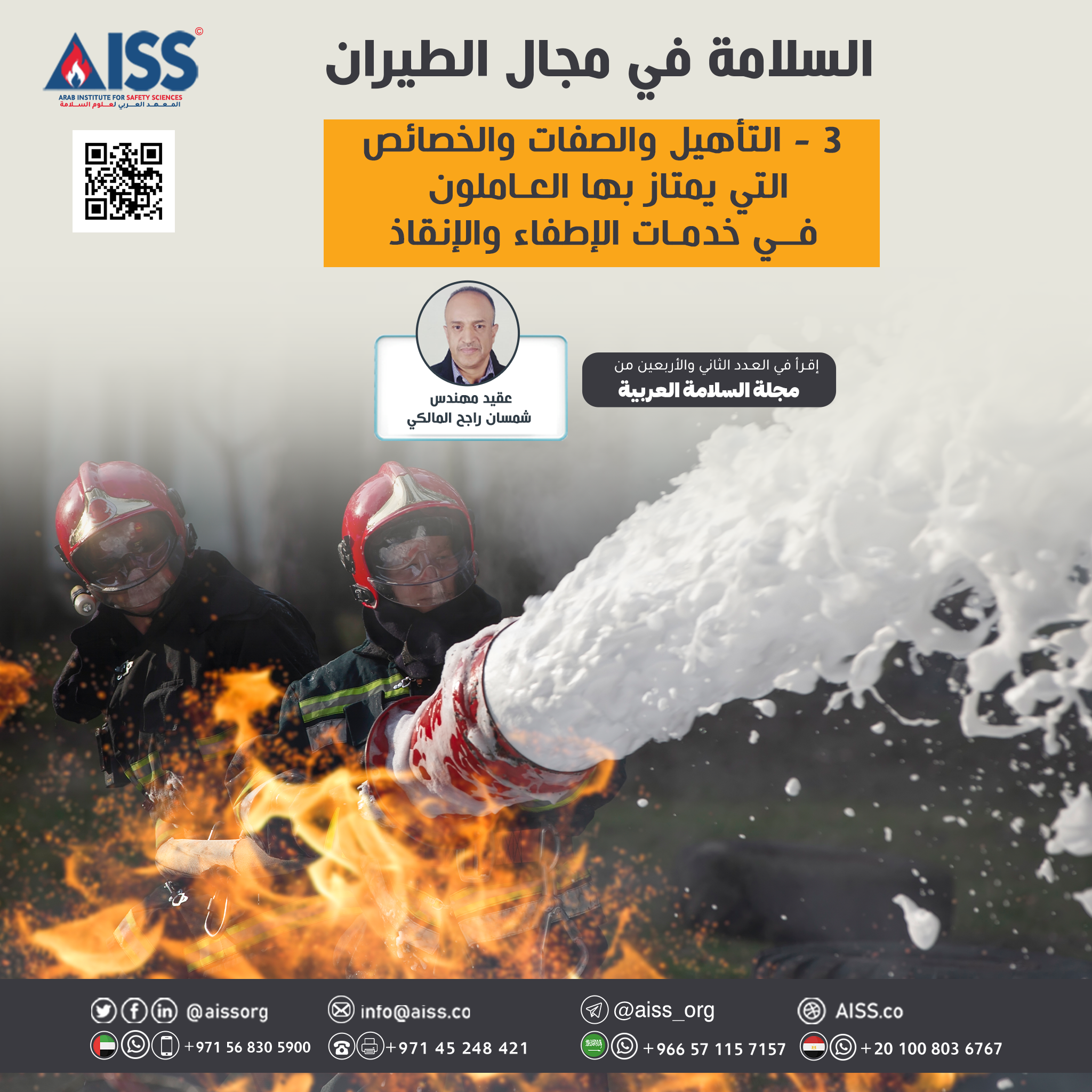 مهنة رجال الإطفاء والإنقاذ تعتبر من الوظائف التي تحتوي على الكثير من المخاطر والتهديدات، وهذا التقييم ليس فقط على المستوى العربي، ولكنه عالمي, وهذا من خلال ما يتعرَّض له كلُّ مَنْ يعمل في هذا المجال الخطر، وما يجب أن يتحلَّى به من عدَّة صفات ومميزات لتمكُّنه من اكتساب مهارات البقاء، واستمراريَّة العطاء بتقديم الخدمات الإنسانيَّة، وإنقاذ الأرواح، وهذا لا يتمُّ إلا لمن تتوفر فيه صفات إنسانية ومهنية متميزة وفريدة عن المهن الأخرى.