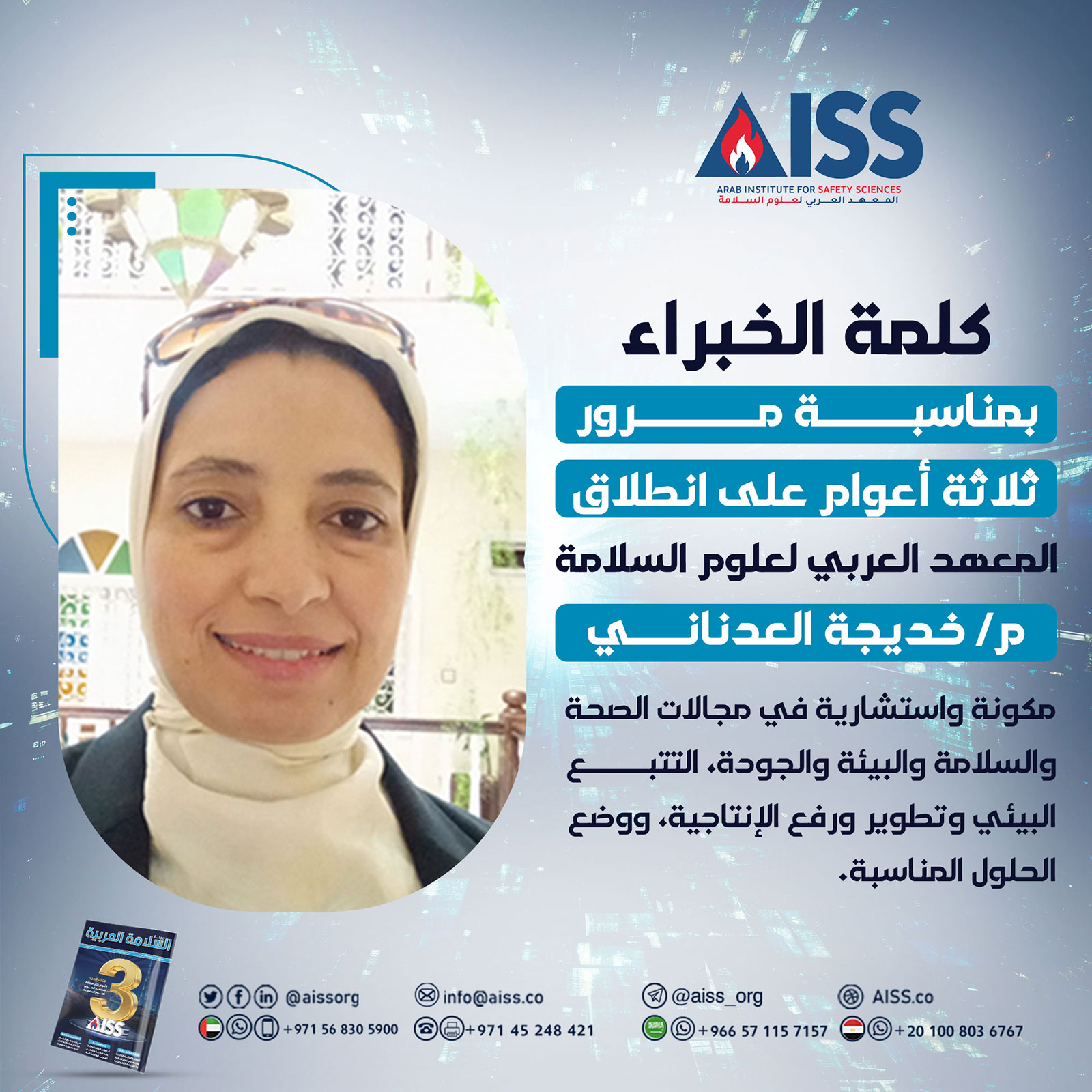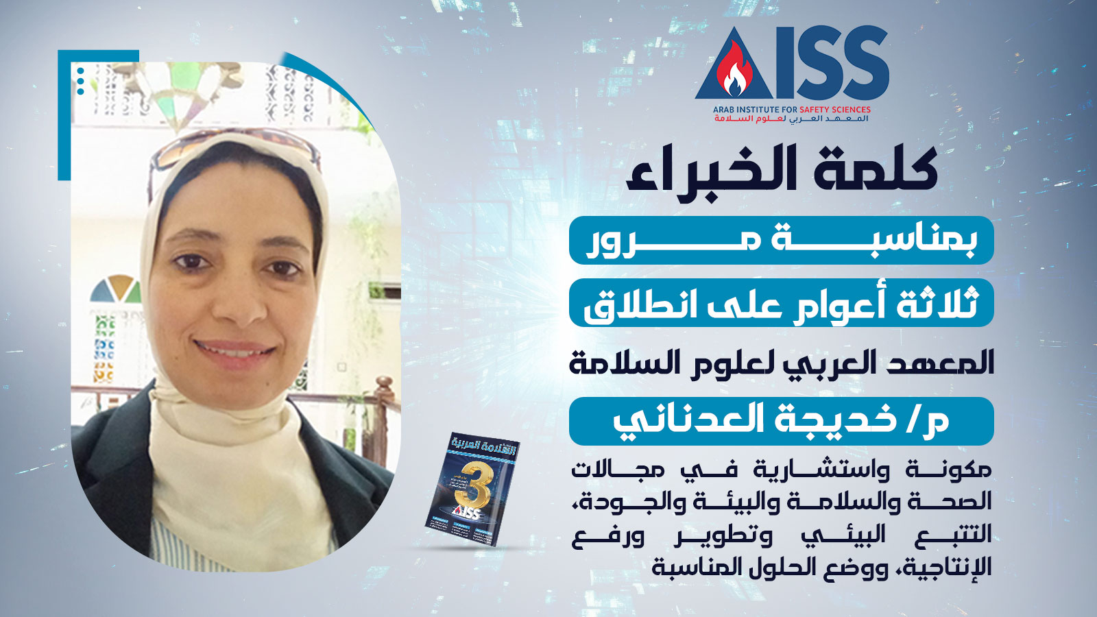 أتقدَّم بالشكر والتقدير والاحترام للمعهد العربي لعلوم السلامة على المجهودات القيِّمة، والإنجازات الكبرى التي حقَّقها ولا يزال يحققها في مجالات السلامة والتوعية، وترسيخ ثقافة السلامة، ودورها وأهميَّتها لدى جميع الجهات الفاعلة في وطننا العربي.