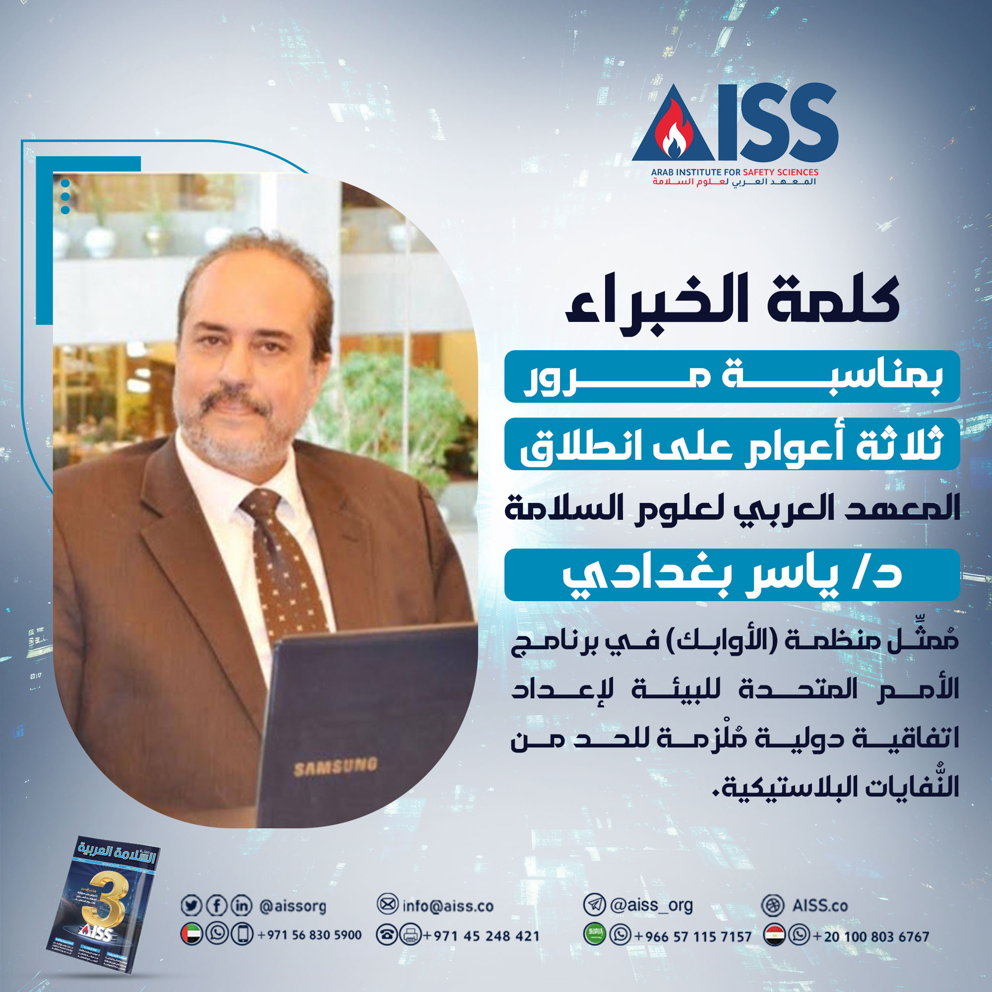 ومن هنا جاءت أهمية وجود كيانات عربية متخصصة لنشر مفهوم السلامة، ولعلَّ (المعهد العربي لعلوم السلامة)، والذي يُعدُّ أحد أهم الهيئات العربية الوليدة، والمتخصصة في مجال السلامة، والذي يُعدُّ منصةً حواريةً يلتقي فيها الخبراء من الدول العربية كافَّة لتبادل الخبرات والآراء، ودراسات الحالة من خلال الدورات التدريبية المتخصصة في مجالات السلامة والصحة المهنية كافَّة والبيئة، ومن خلال عَقْد المؤتمرات السنوية، والتي يلتقي فيها لفيفٌ من الخبراء والمختصين العرب لتطوير وزيادة الوعي العربي، وتقديم الاستشارات الفنية من خلال اللجان الفنية المختصة.
