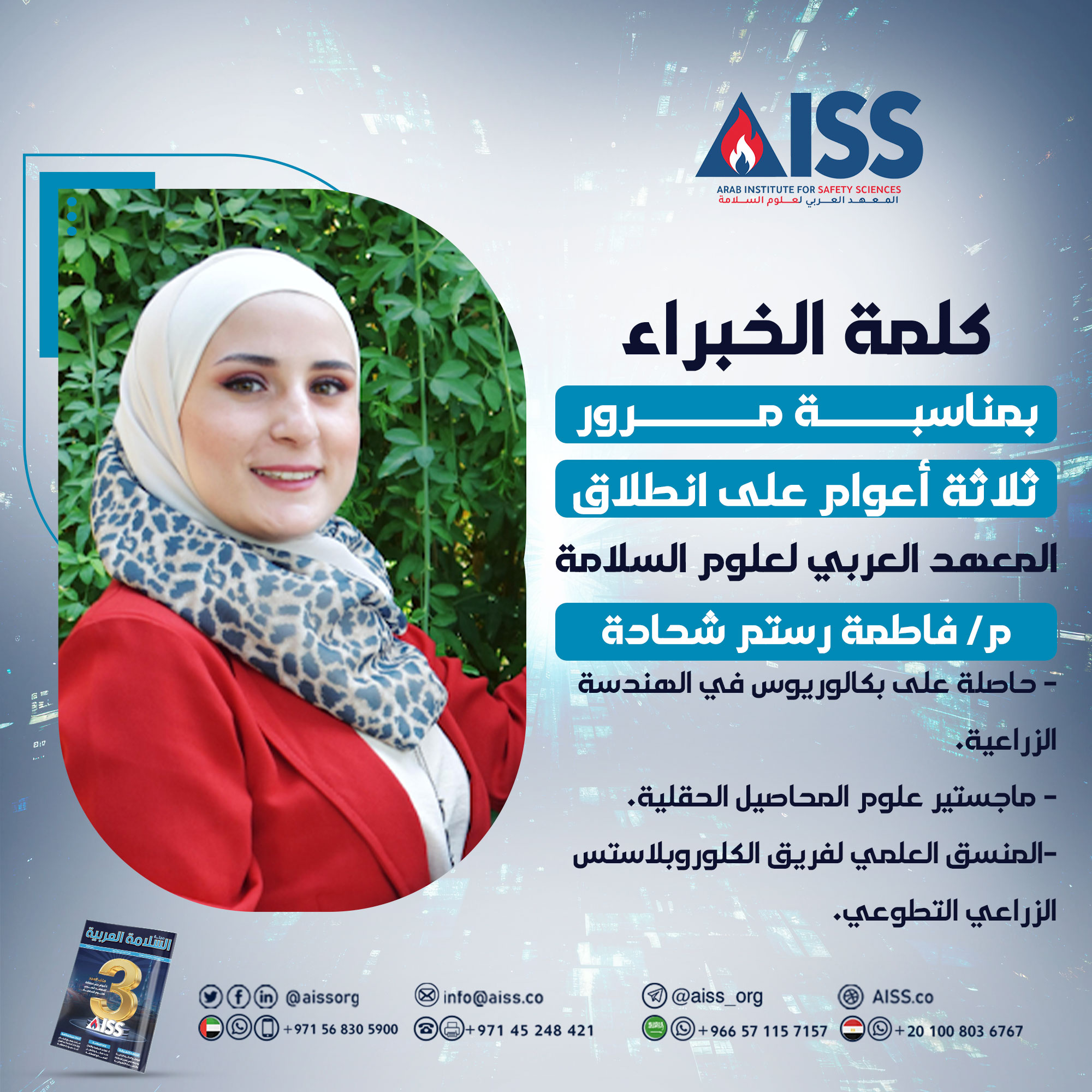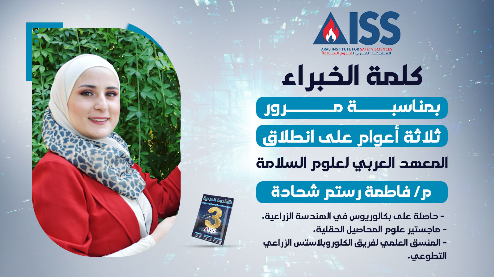 شكرًا للمعهد العربي للسلامة أولًا، ولمجلة السلامة العربية ثانيًا؛ لإتاحة فرصة المساهمة في هذا البند المهم من بنود التطوُّر العلمي ضمن وطننا العربي.