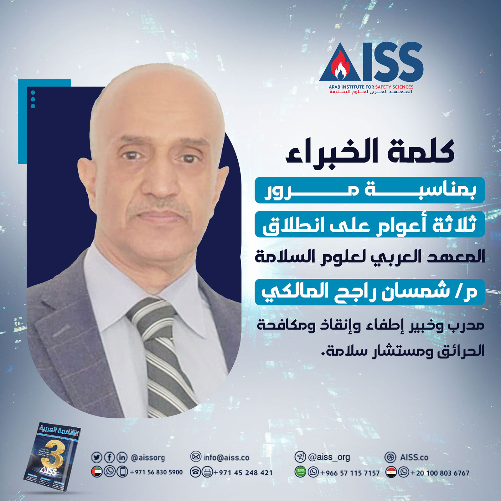 وكلُّ الشكر والتقدير للقائمين على المعهد العربي لعلوم السلامة على جهودهم العظيمة في نَشْر الوعي والثقافة والتوعية في مجال السلامة.