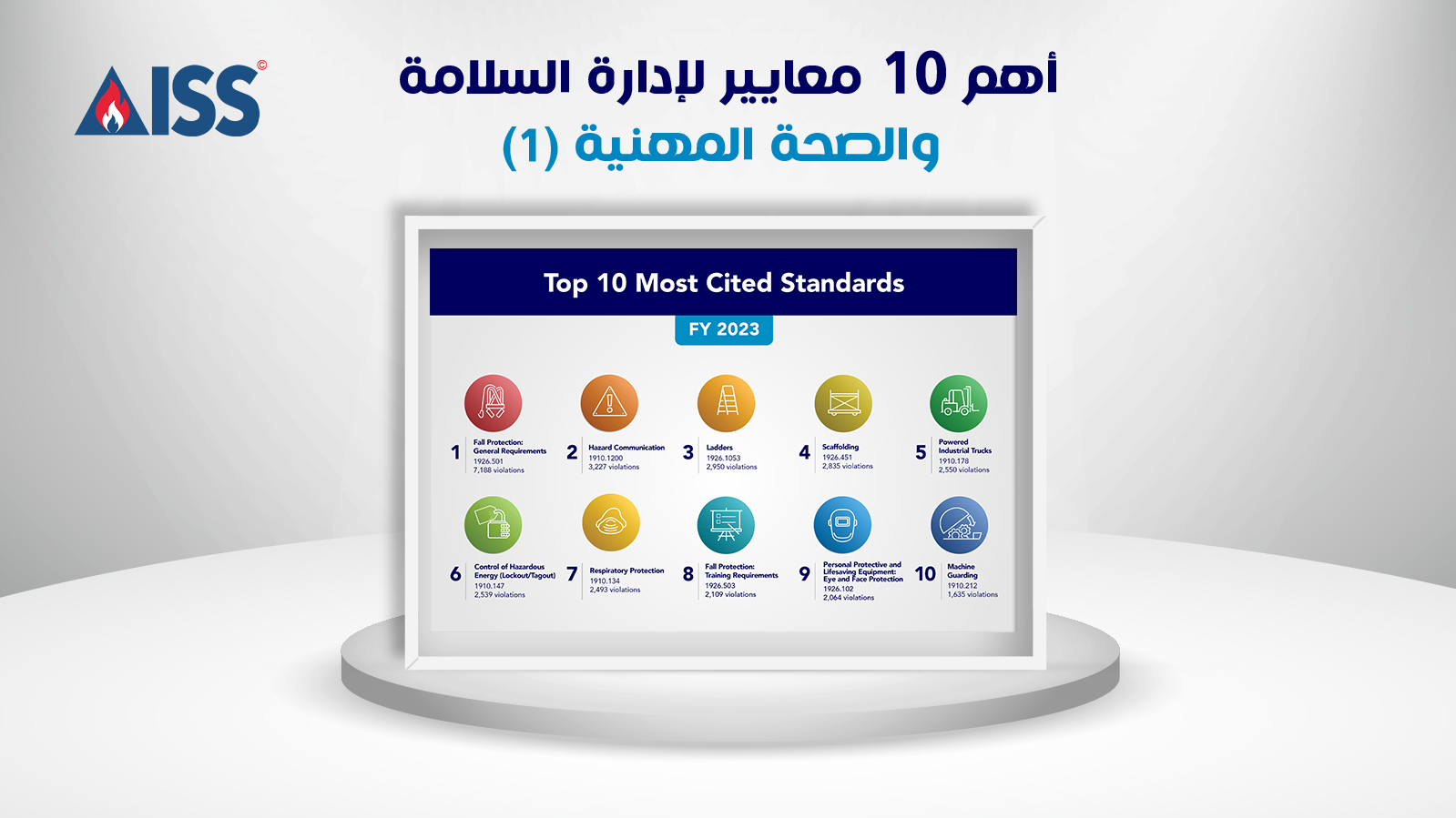 فيما يلي قائمة بأفضل 10 معايير يتم الاستشهاد بها بشكل متكرر بعد عمليات التفتيش على مواقع العمل من قبل إدارة السلامة والصحة المهنية الفيدرالية لجميع الصناعات.