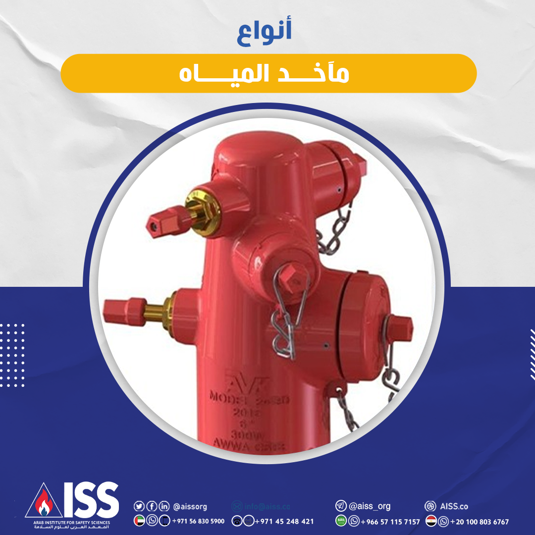 - صمام تحكم مأخذ المياه يكون في أسفل القاعدة الأسطوانية لحنفية الاطفاء